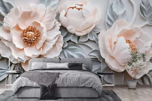 Fototapet Bujori mari magnifice cu frunze în stil fresco Nr. w08954