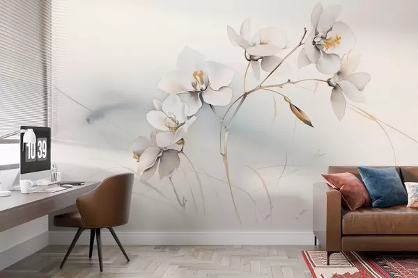 Fototapet Ramură de orhidee albă în stil acuarelă Nr. w09022