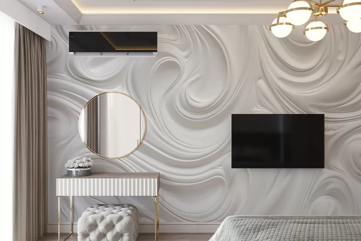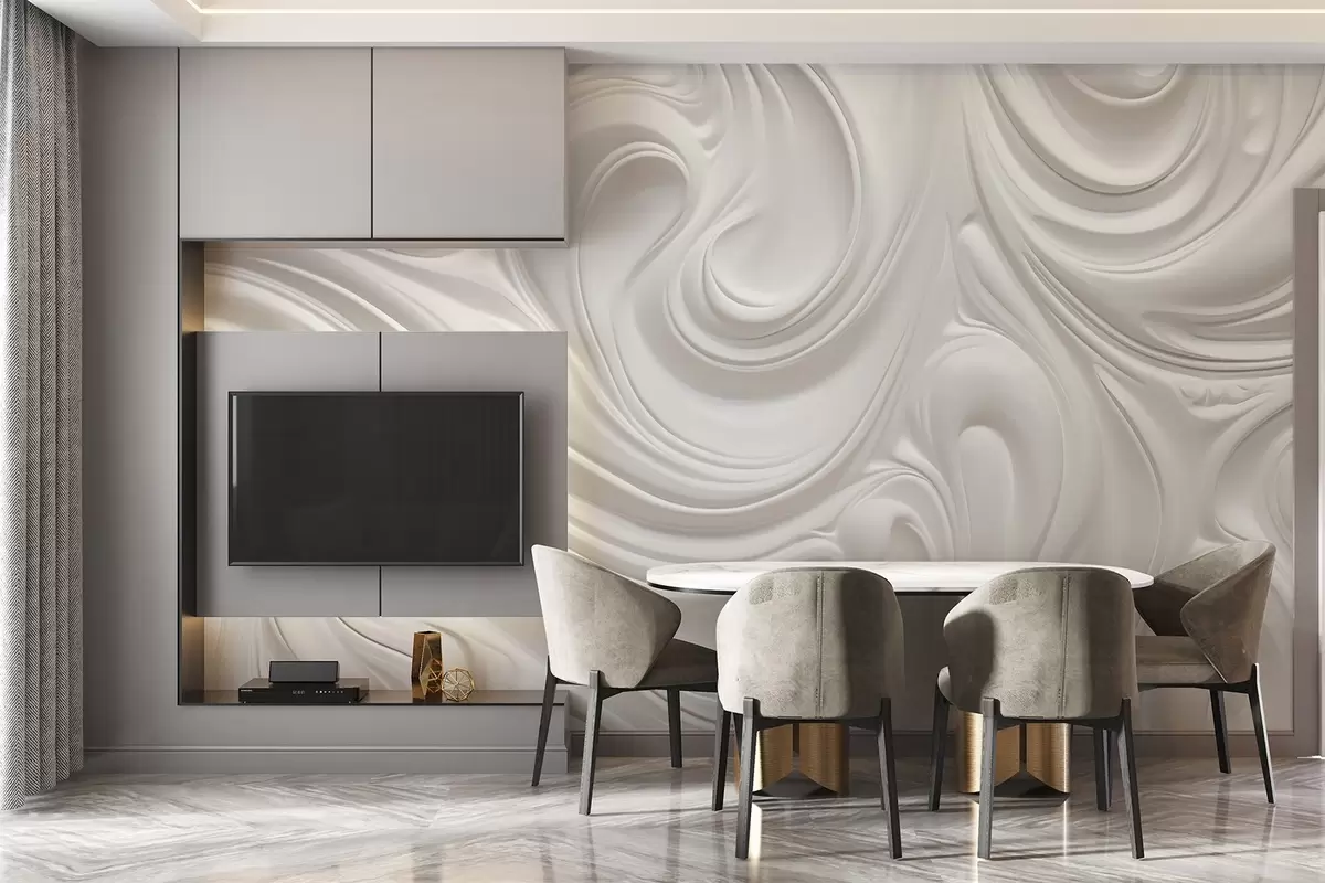 Fototapet Artă modernă abstractă albă cu vârtejuri și valuri fluide, textură netedă, design elegant, estetică minimalistă Nr. w09059
