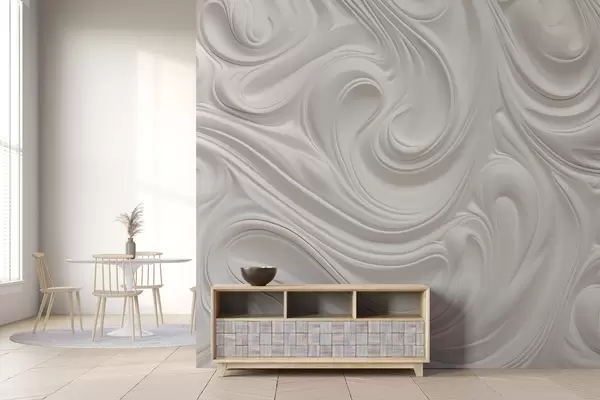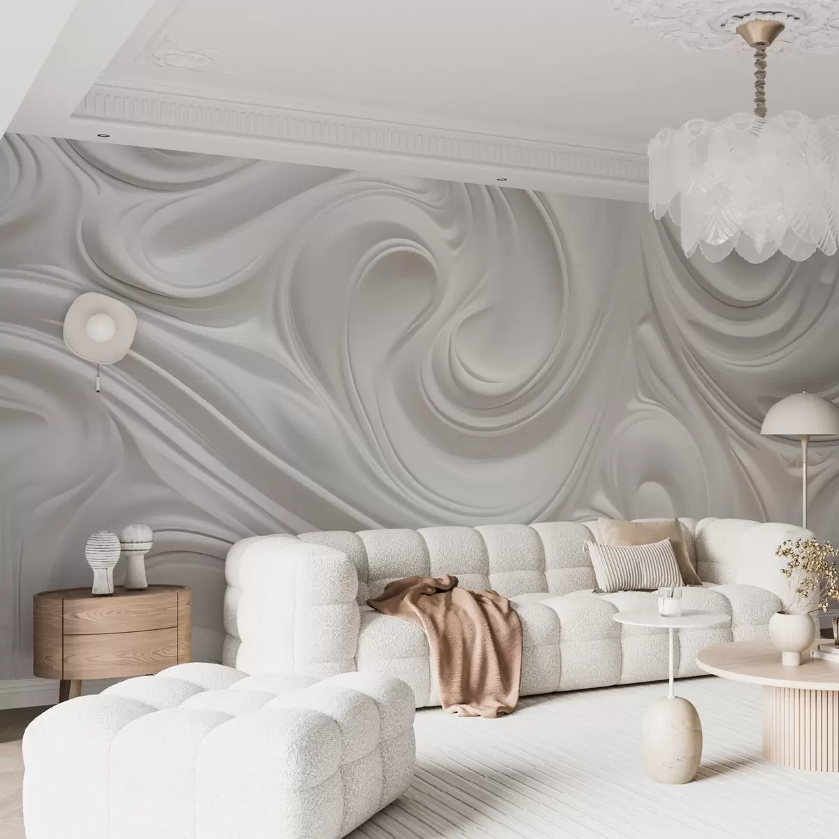 Fototapet Artă modernă abstractă albă cu vârtejuri și valuri fluide, textură netedă, design elegant, estetică minimalistă Nr. w09059
