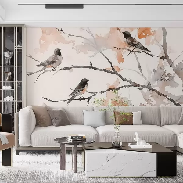 fototapet Păsări pe ramuri de copac în stil acuarelă w09064v2