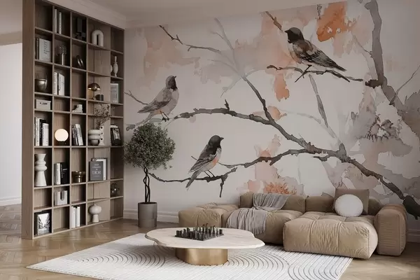 Fototapet Păsări pe ramuri de copac în stil acuarelă Nr. w09064v2