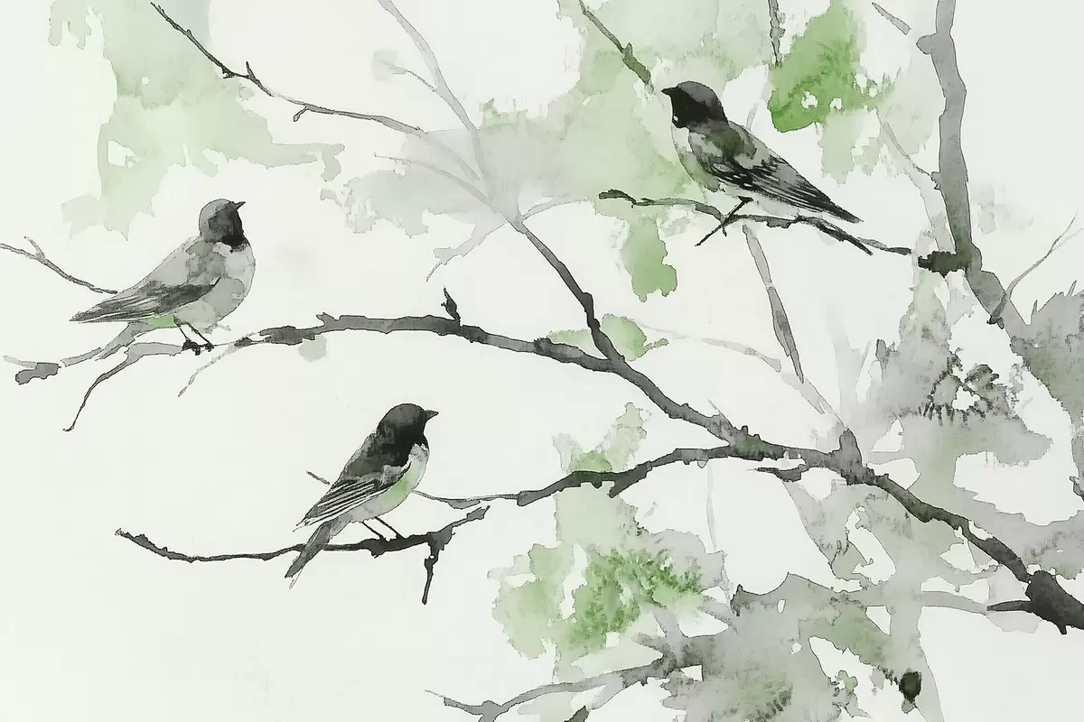 Fototapet Păsări pe ramuri de copac în stil acuarelă Nr. w09064v3