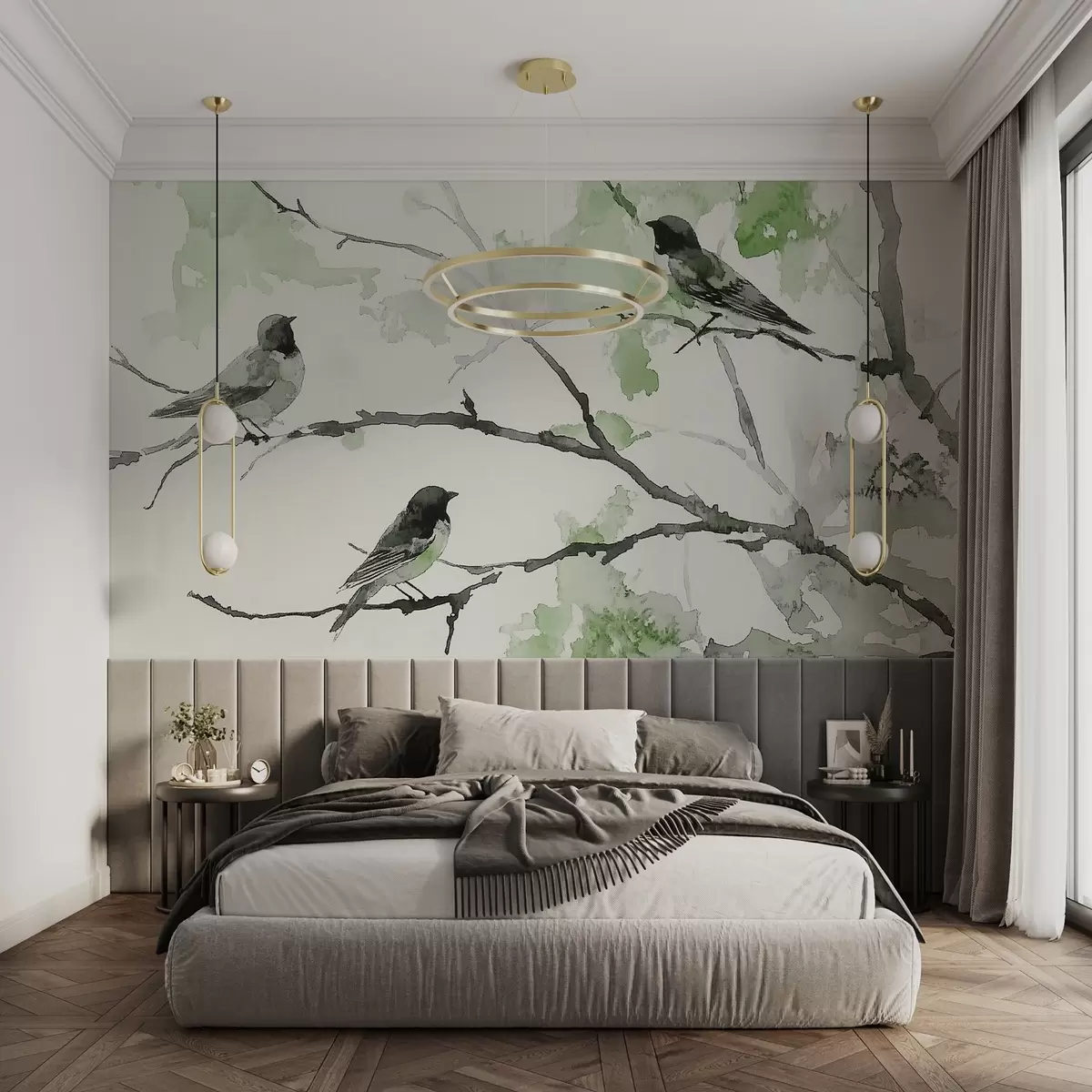 Fototapet Păsări pe ramuri de copac în stil acuarelă Nr. w09064v3