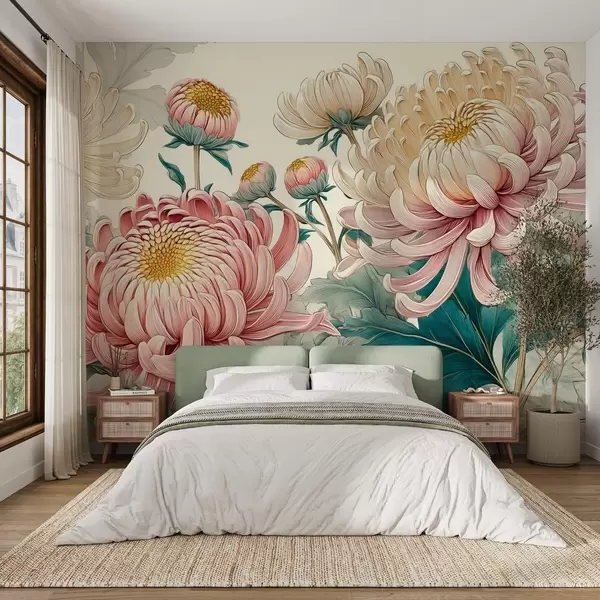 Fototapet Pictură complicată de crizanteme albe și roz Nr. w09081