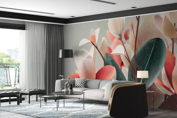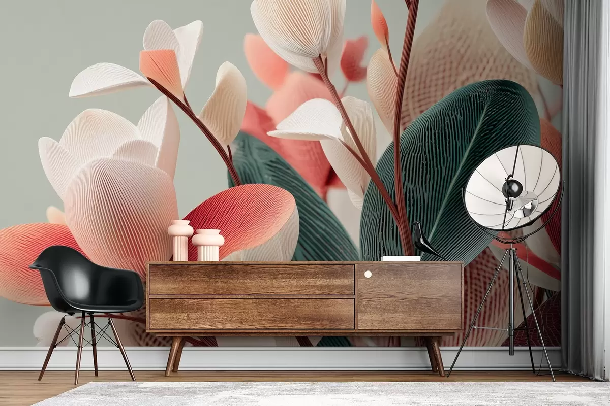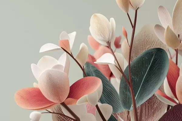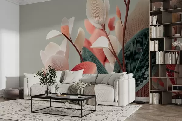 Fototapet Flori și frunze texturate în tonuri pastelate și verzi Nr. w09094