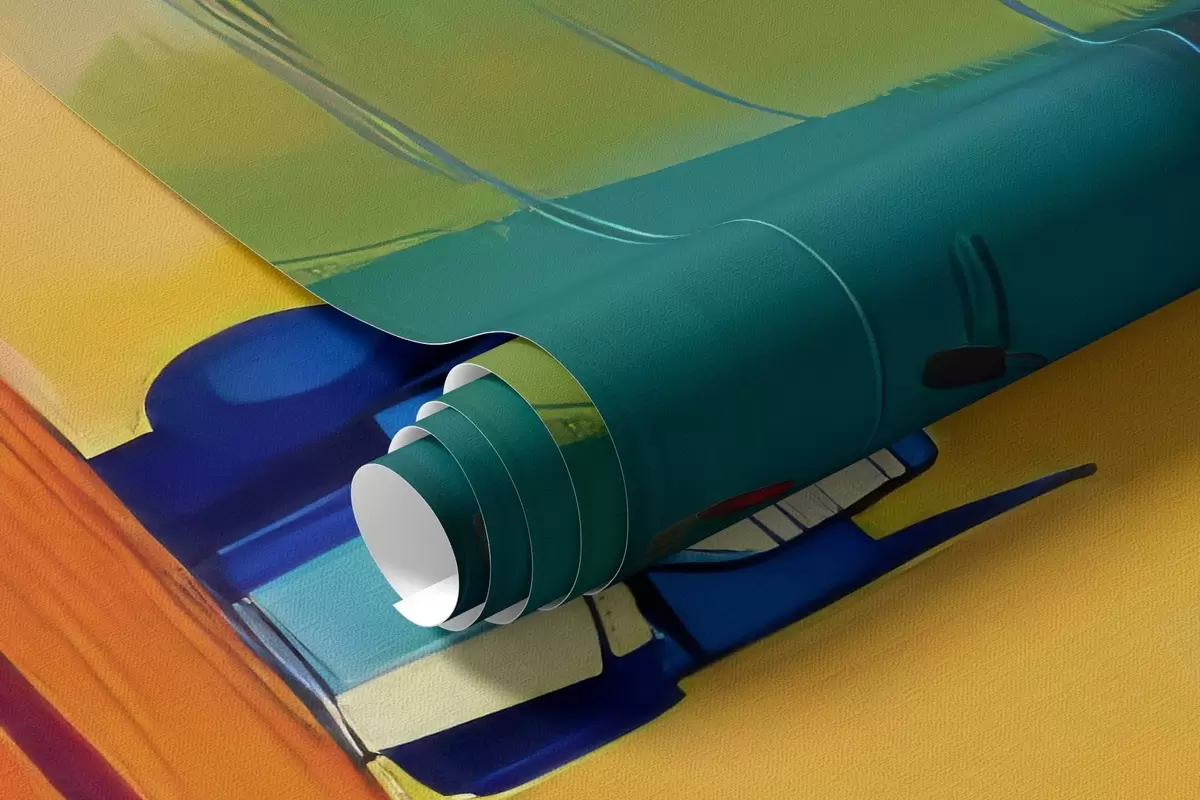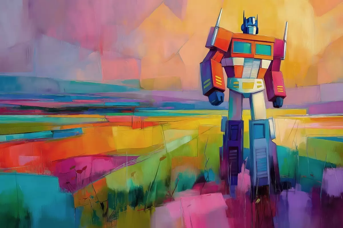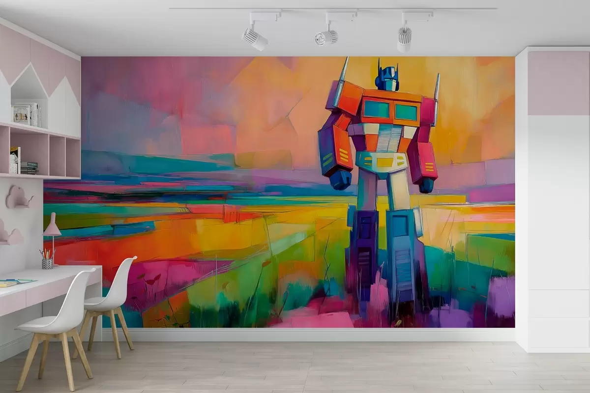 Fototapet Robot împotriva unui peisaj abstract luminos în stilul picturii în ulei Nr. w09096