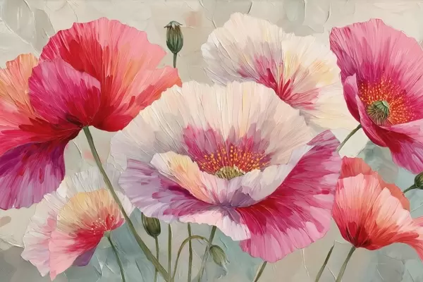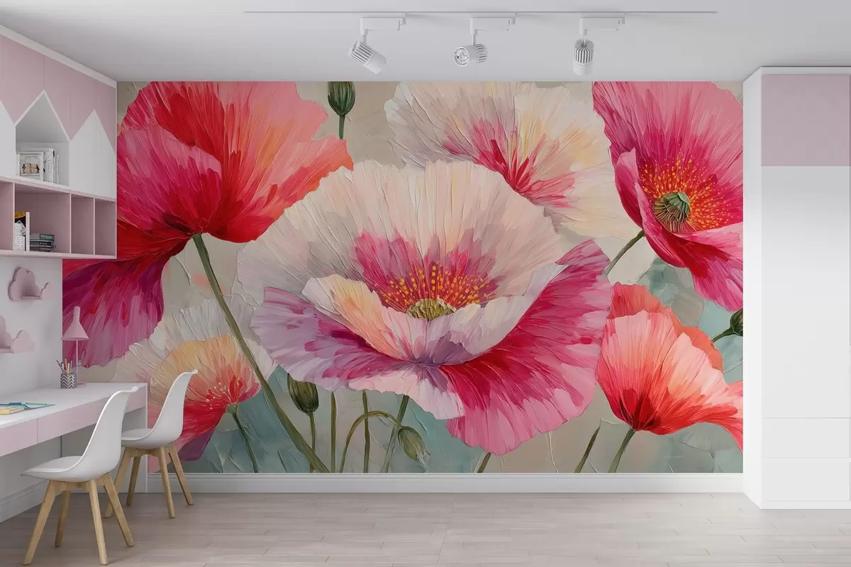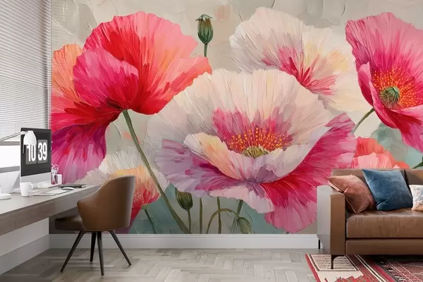 Fototapet Mac alb și roșu în stilul picturii în ulei cu tușe îndrăznețe Nr. w09097