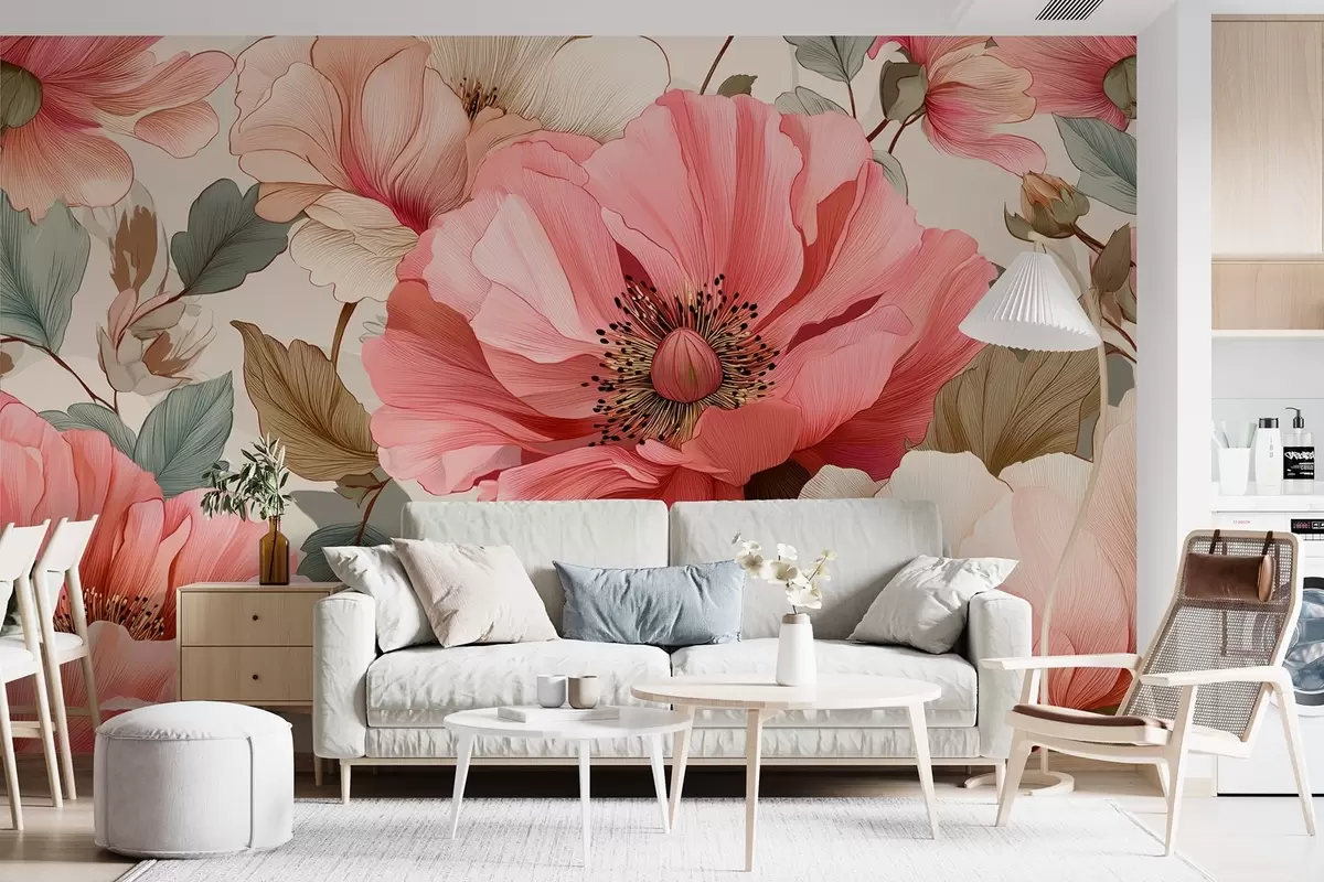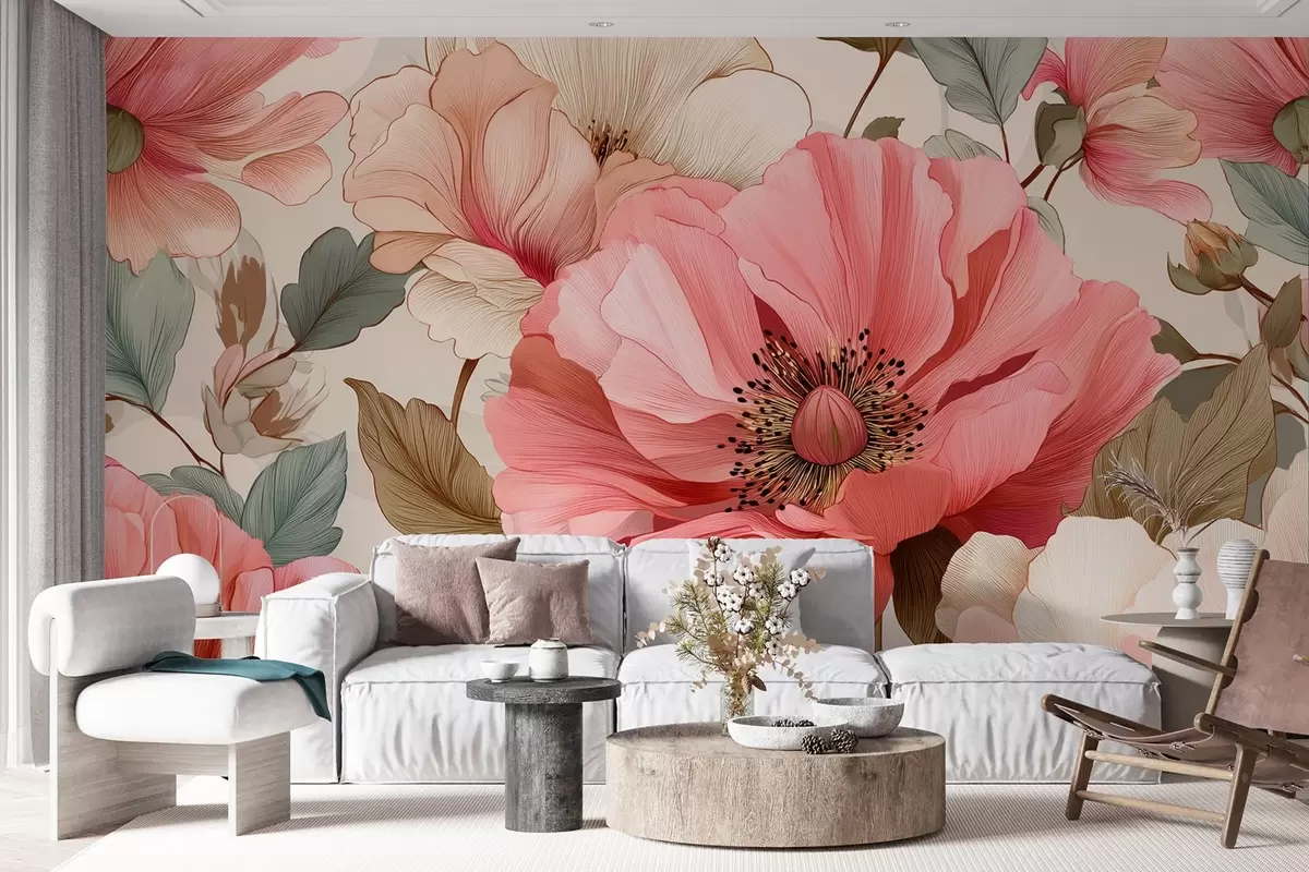 Fototapet Mac delicat cu frunze în nuanțe de roșu-roz Nr. w09100