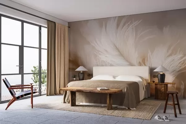 fototapet Flying pene aerisite pe un fundal bej w09102