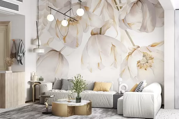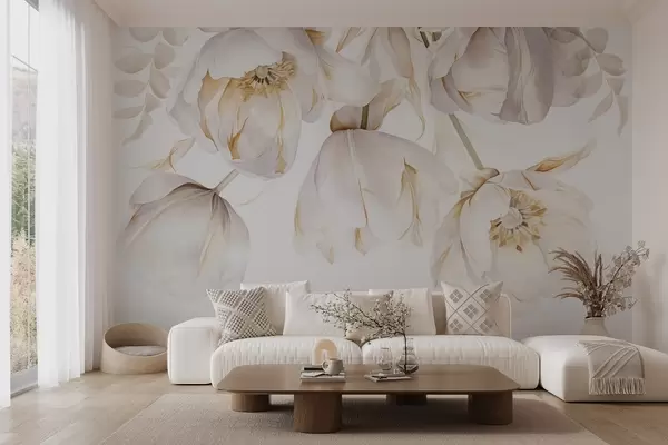 Fototapet Lalele albe cu pistil galben, petale delicate, aranjament floral elegant, compoziție delicată, pe un fundal alb Nr. w09112