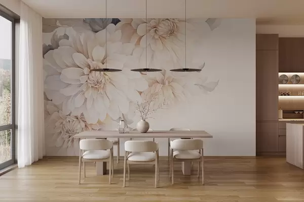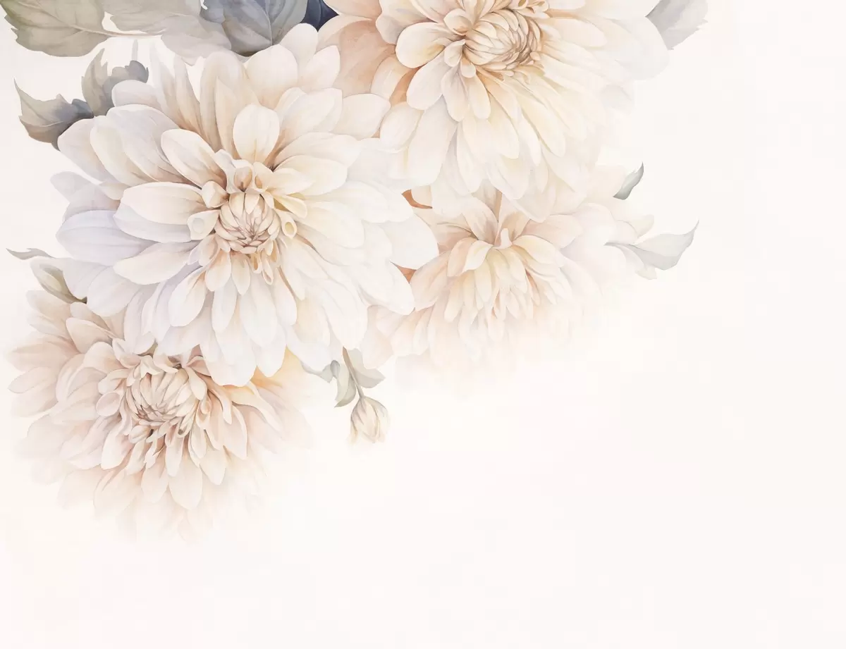 Fototapet Dalii pastelate cu petale moi, delicate de piersică și lumină albă în stil acuarelă, fundal moale Nr. w09115
