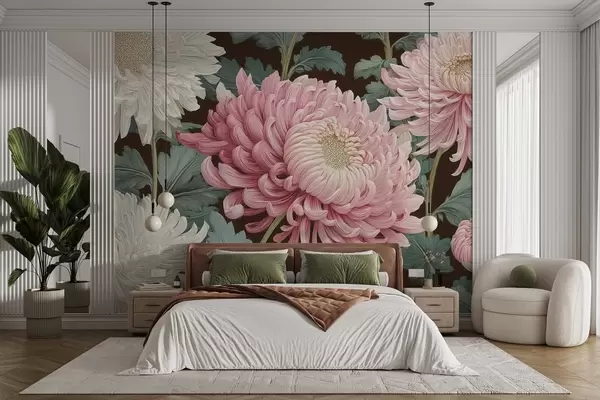 Fototapet Orhidee mari roz și albe cu frunze pe un fundal închis Nr. w09125