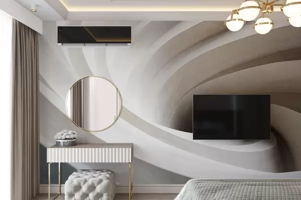 Fototapet Vârtej abstract texturat de straturi albe și bej, creând un efect vortex, compoziție dinamică, design minimalist modern Nr. w09144