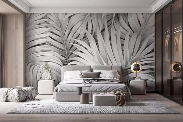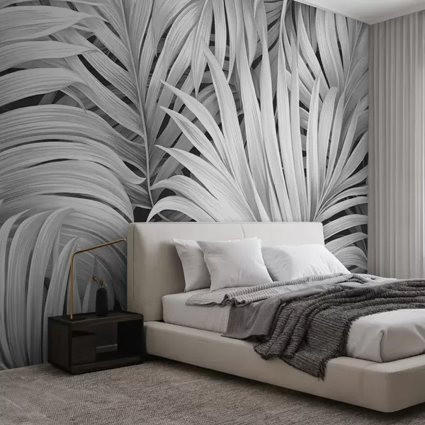 Fototapet Frunze de palmier tropical cu textură monocromă, creând un imprimeu tropical și botanic Nr. w09145