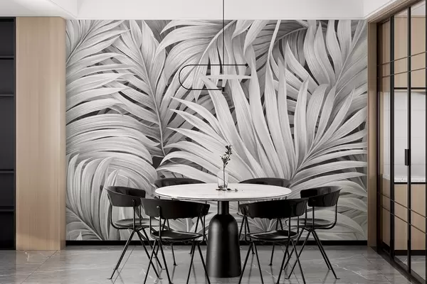 Fototapet Frunze de palmier tropical cu textură monocromă, creând un imprimeu tropical și botanic Nr. w09145