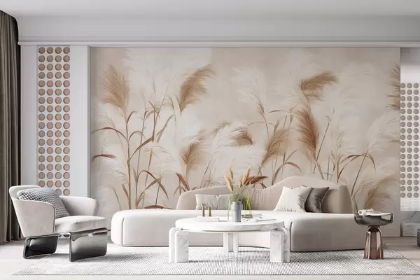Fototapet Iarba de pampas elegantă înflorește în tonuri moi de bej și lăptos Nr. w09150v1