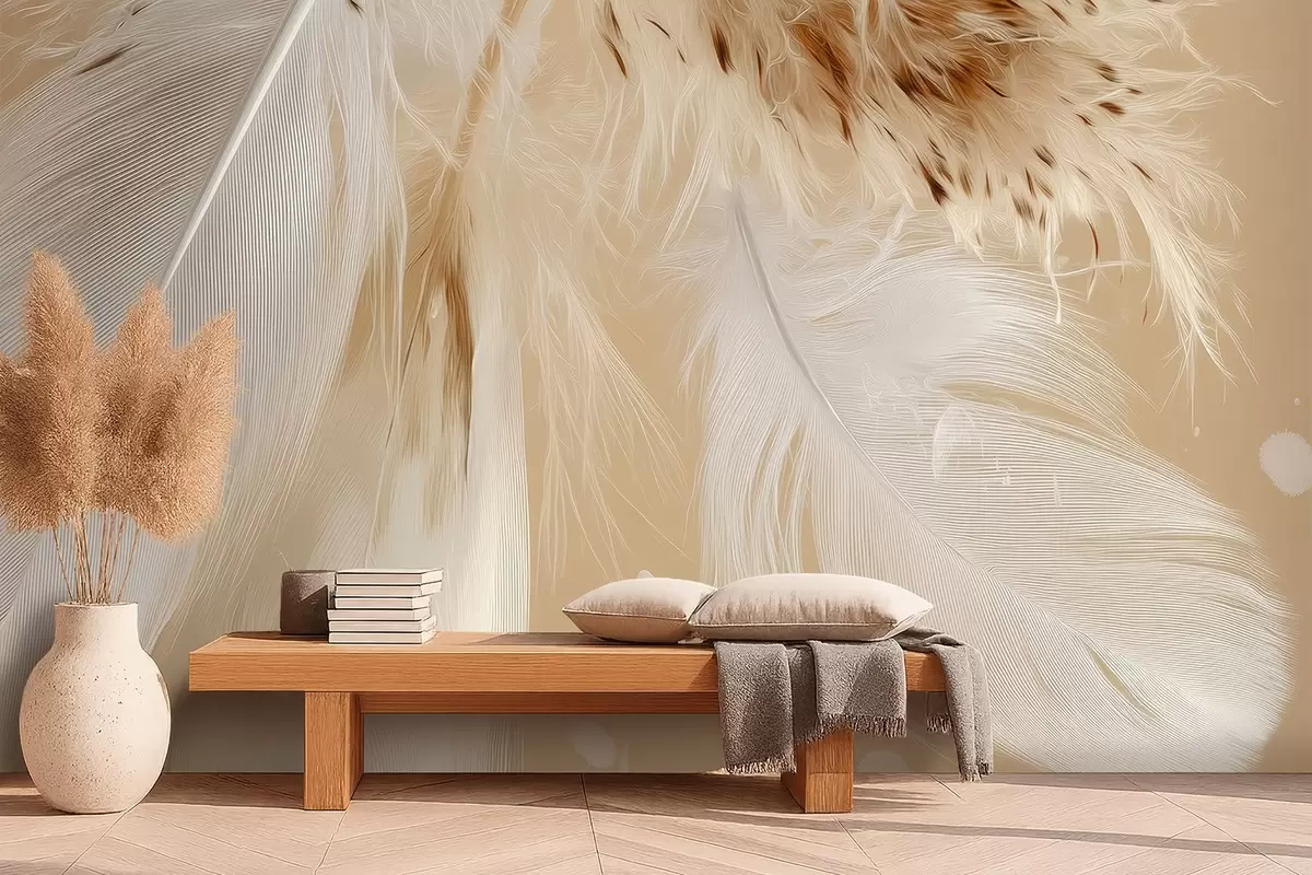 Fototapet Pene ușoare în tonuri calde de bej și alb Nr. w09153
