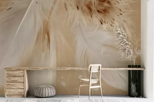Fototapet Pene ușoare în tonuri calde de bej și alb Nr. w09153