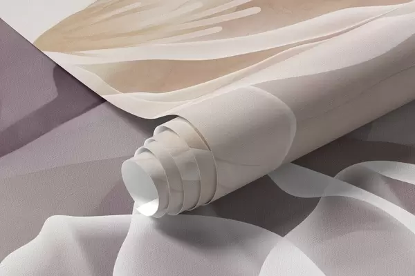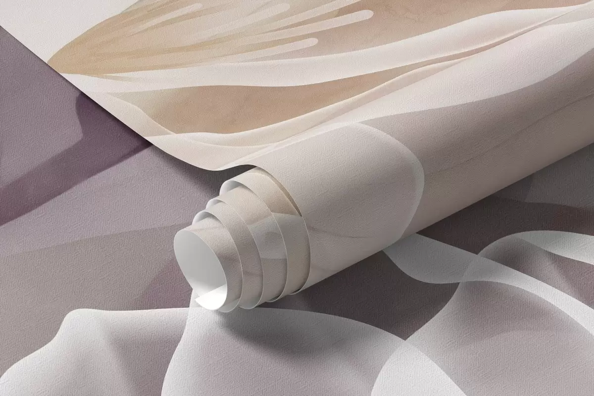 fototapet Flori și frunze cu petale transparente în nuanțe de alb, bej și violet, moi și delicate w09158