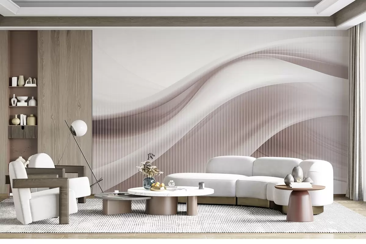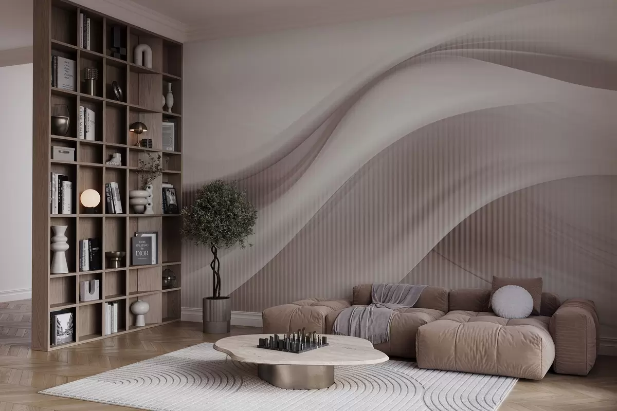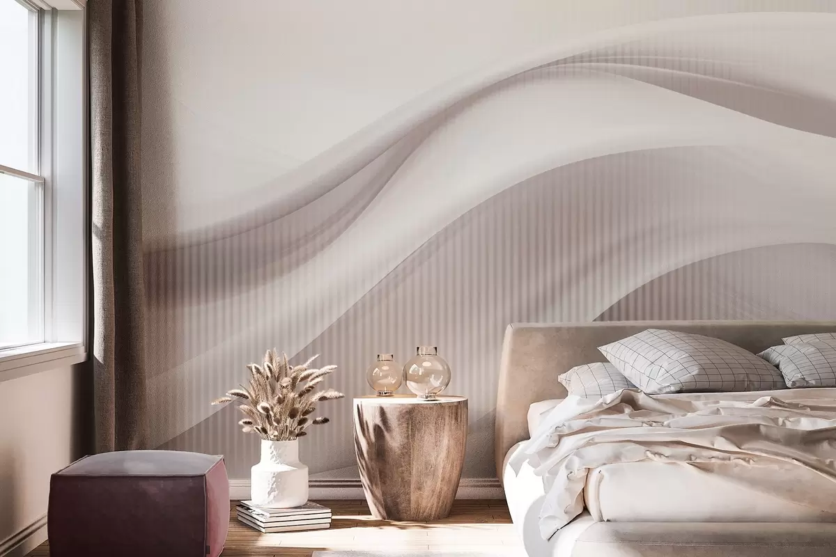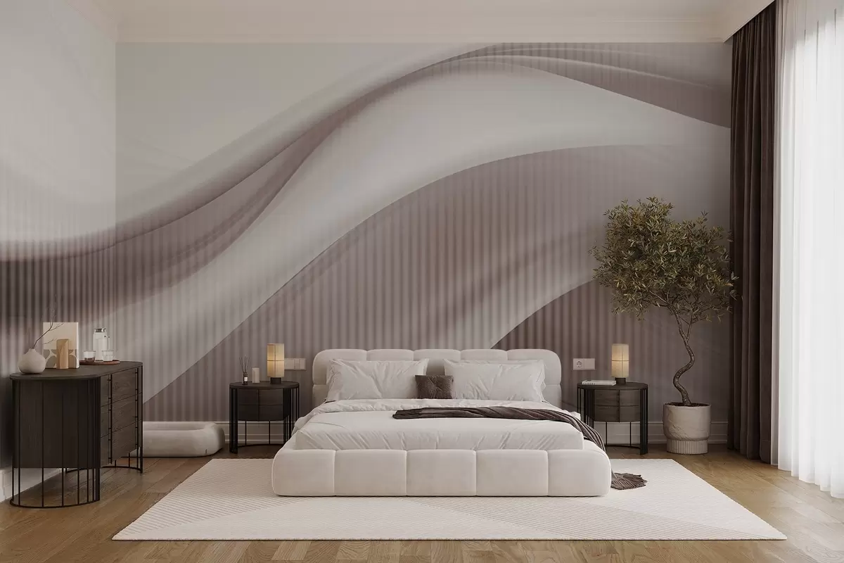 Fototapet Imprimeu abstract cu linii fluide și dungi verticale subtile, creând un sentiment de mișcare și profunzime, paletă bej Nr. w09189