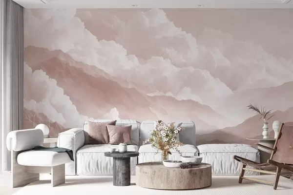 Fototapet Peisaj montan moale în tonuri ușoare de pudră Nr. w09226v1