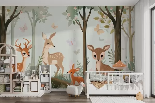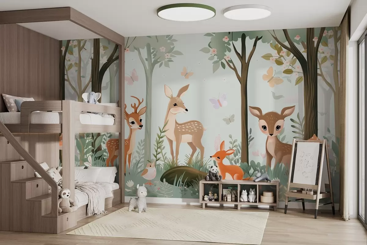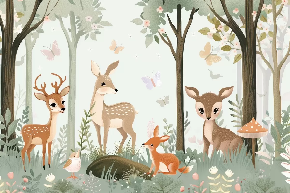 Fototapet Animale de pădure capricioase în tonuri verzi Nr. w09227