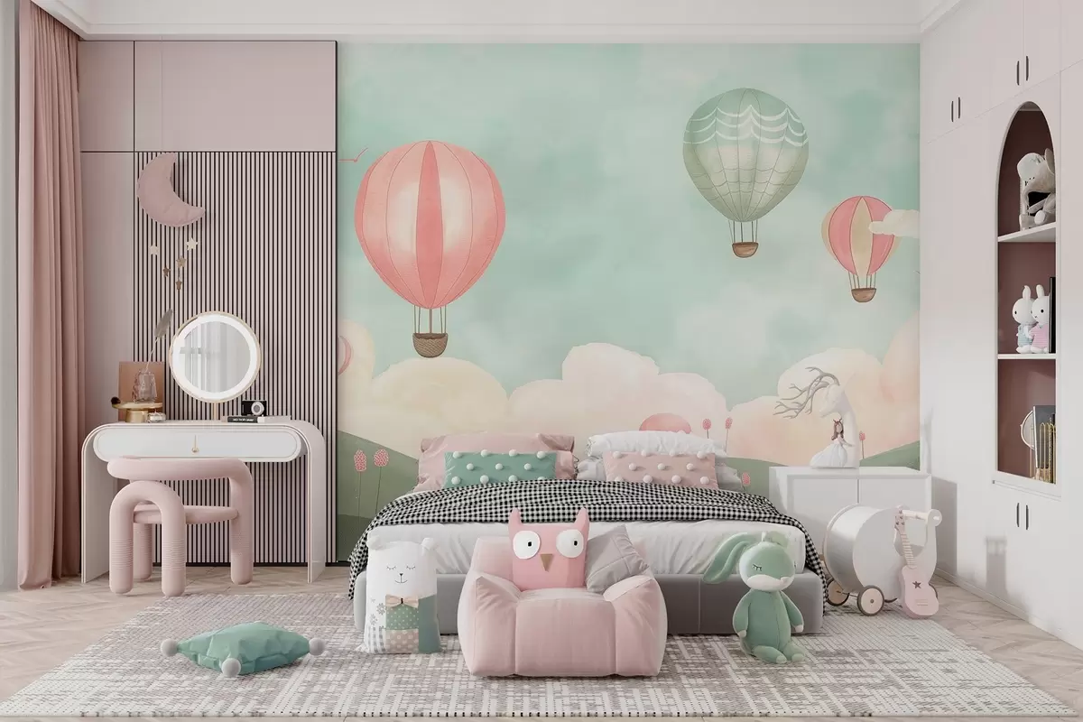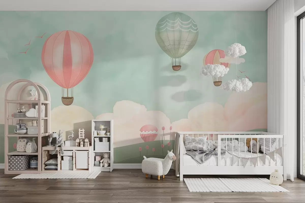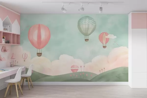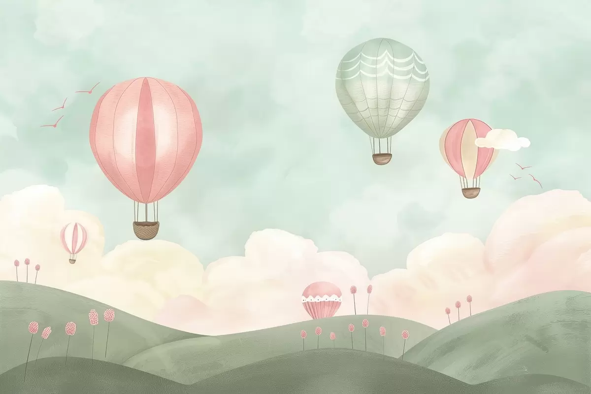 Fototapet Baloane cu aer cald peste dealuri cu nori Nr. w09228