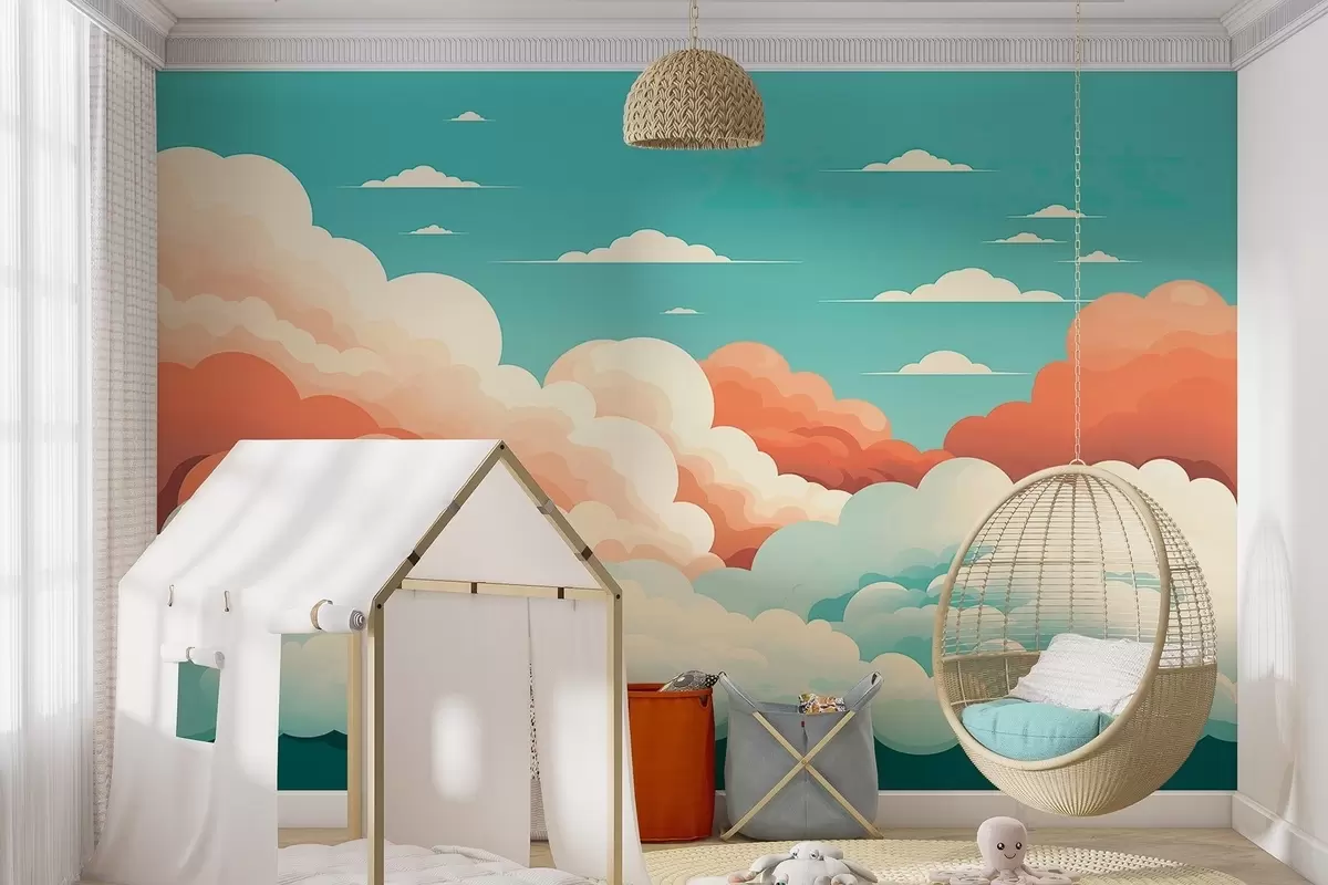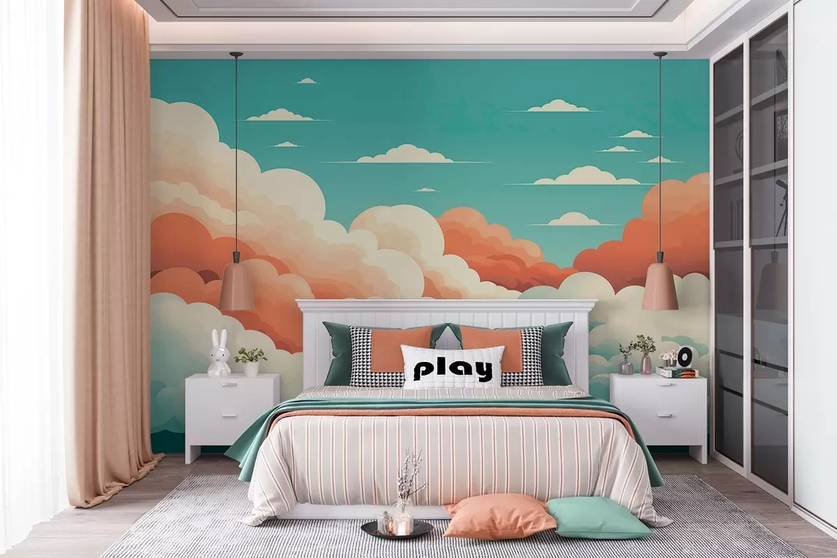 Fototapet Nori capricioși în stil desen animat sub un cer albastru Nr. w09246