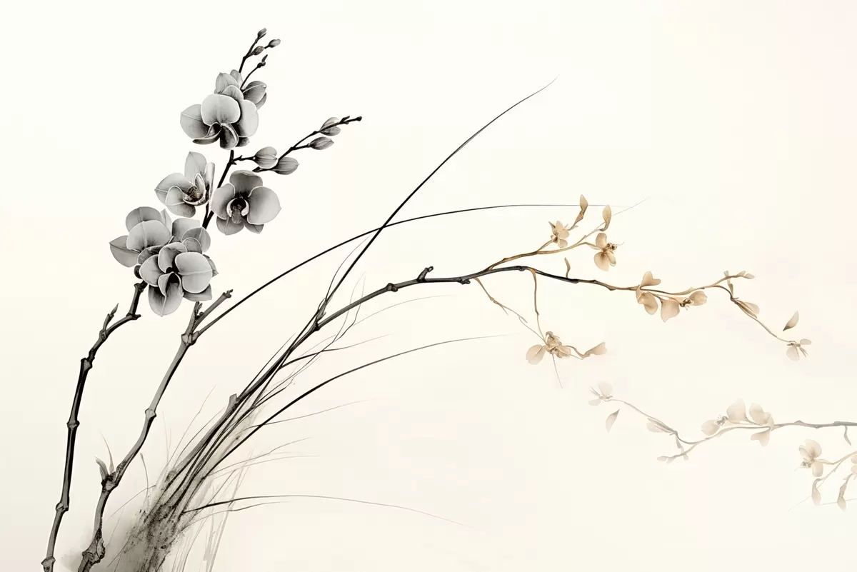 Fototapet Ramură de orhidee minimalistă în tonuri sepia și gri moi Nr. w09250