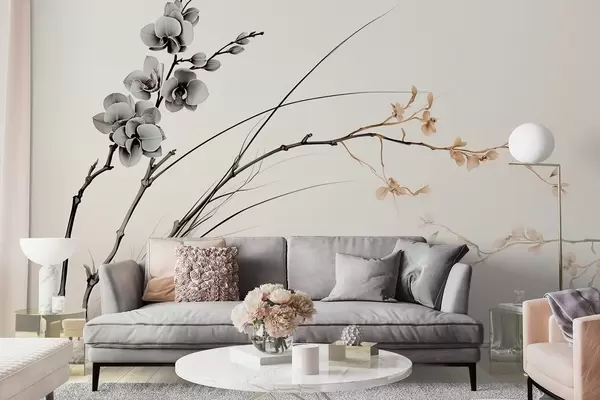 fototapet Ramură de orhidee minimalistă în tonuri sepia și gri moi w09250