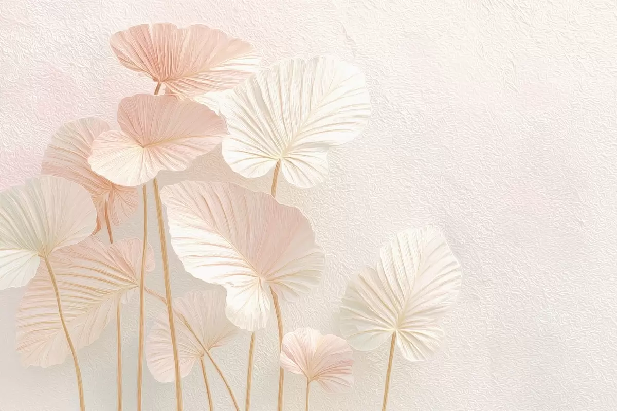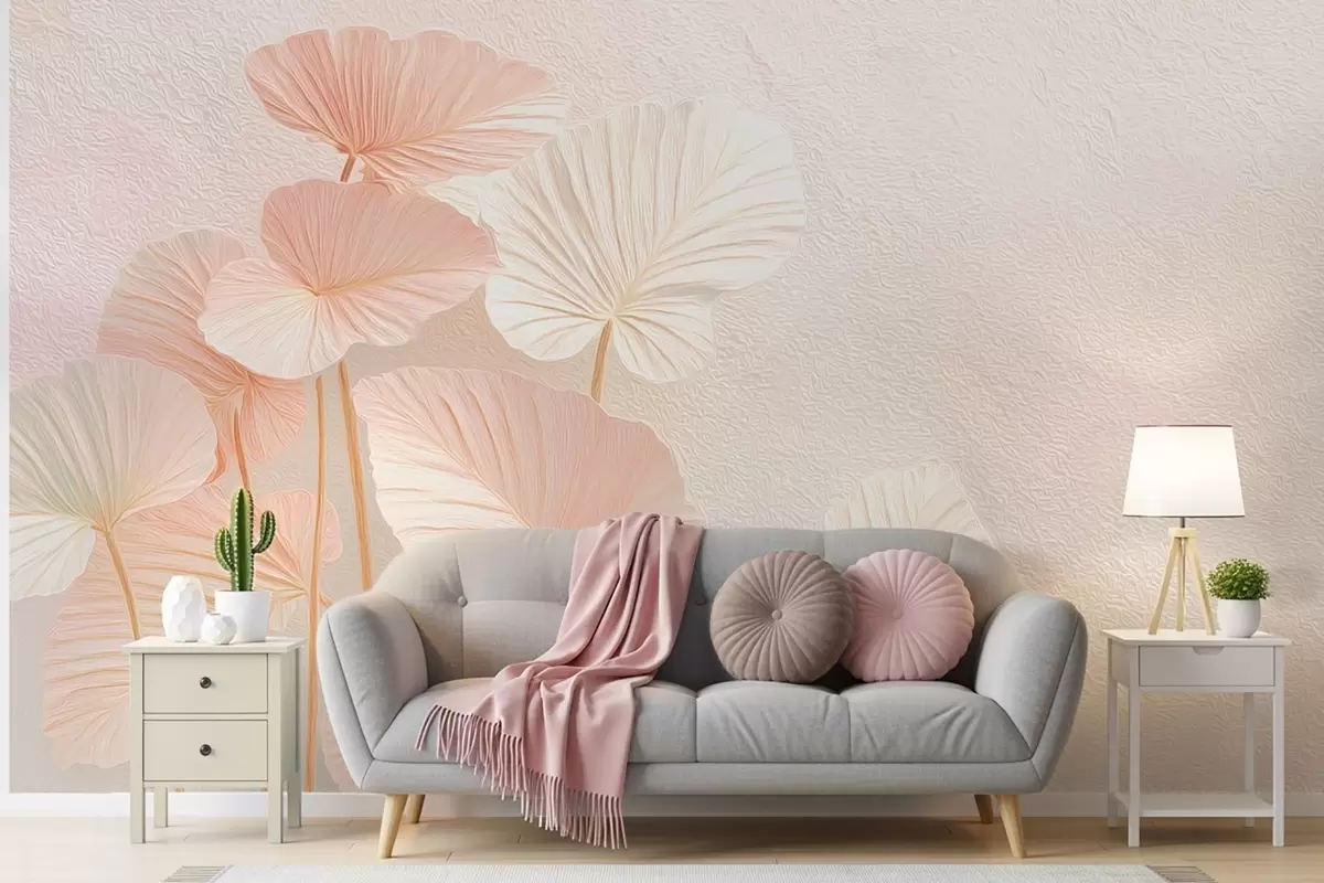 Fototapet Frunze tropicale elegante, mari, de culoare roz delicat Nr. w09252v1