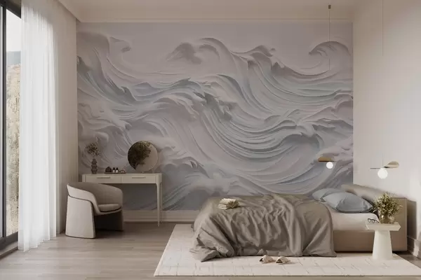 Fototapet Valuri oceanice abstracte texturate alb și albastru deschis cu spumă, curgând de la stânga la dreapta, imprimare dinamică și texturată Nr. w09266