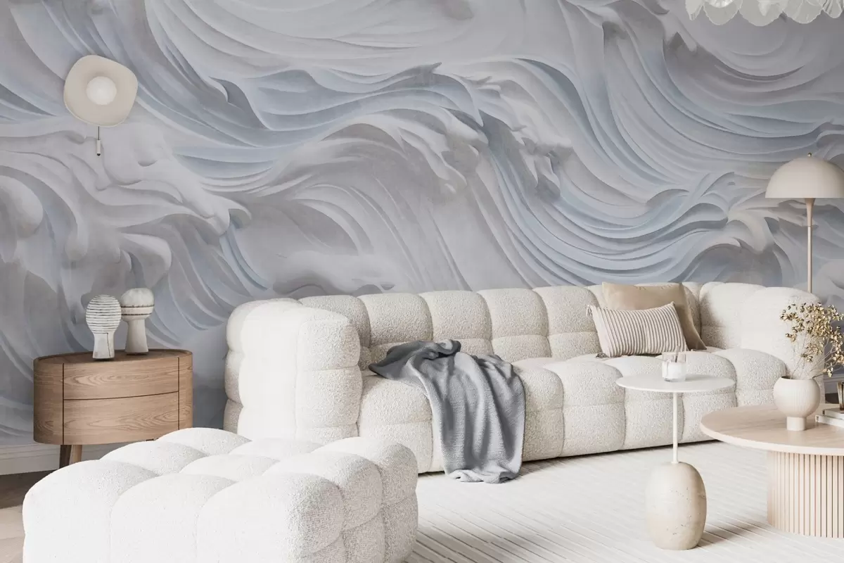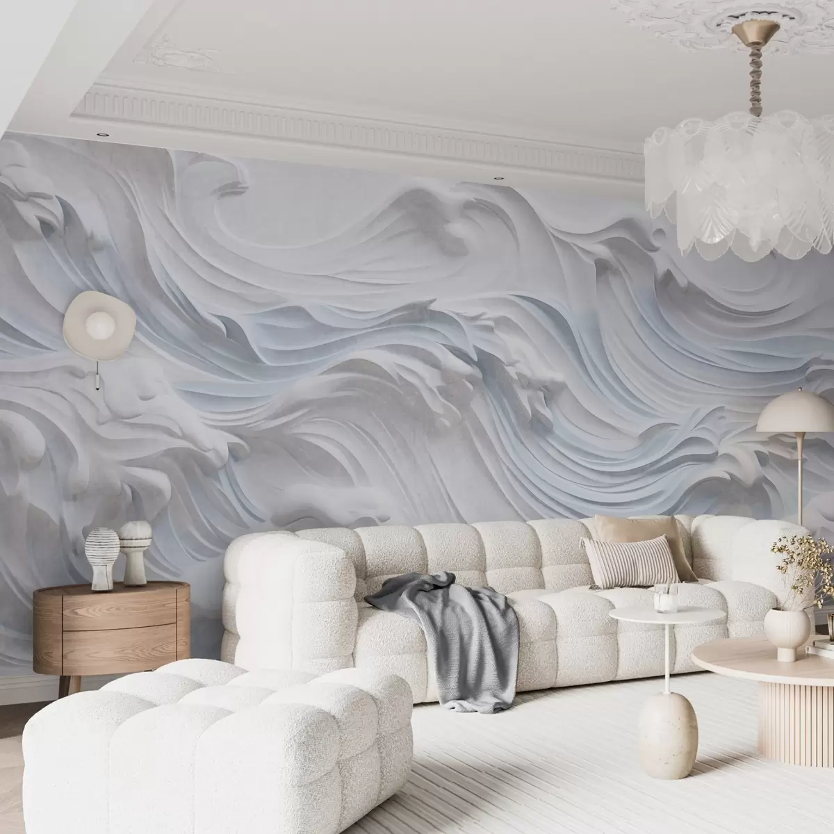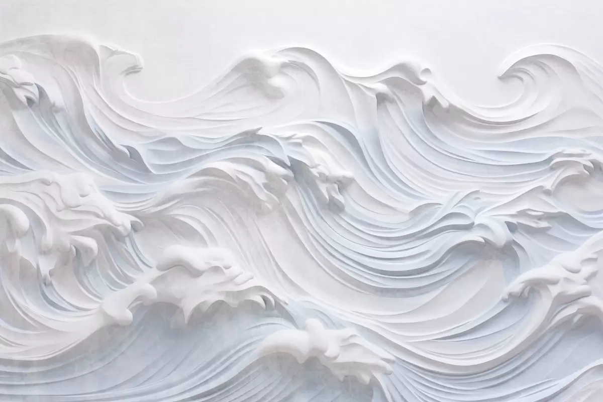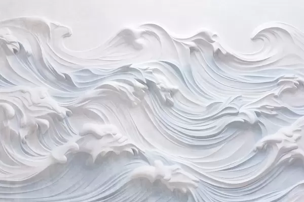 Fototapet Valuri oceanice abstracte texturate alb și albastru deschis cu spumă, curgând de la stânga la dreapta, imprimare dinamică și texturată Nr. w09266