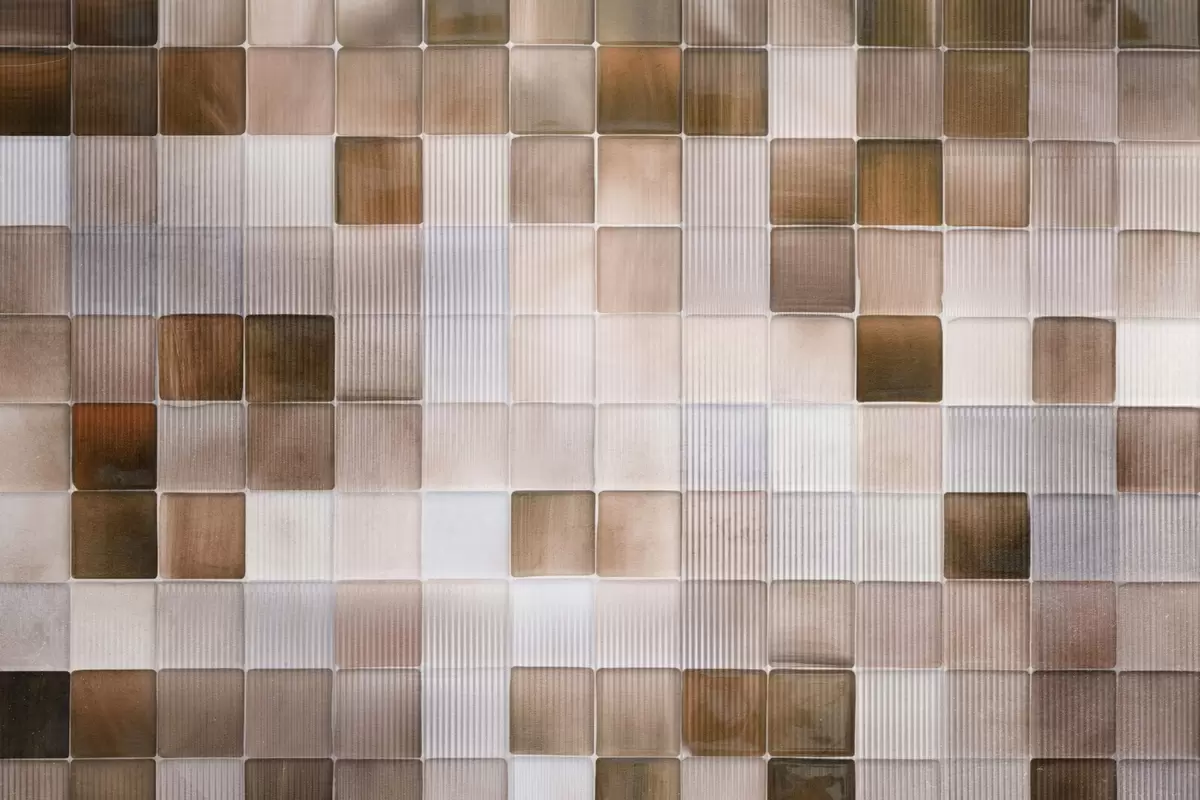 Fototapet Plăci pătrate de mozaic din piatră în nuanțe de maro, bej și alb, cu o textură abstractă zgomotoasă granulată canelată Nr. w09269
