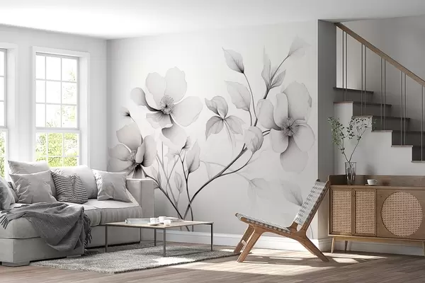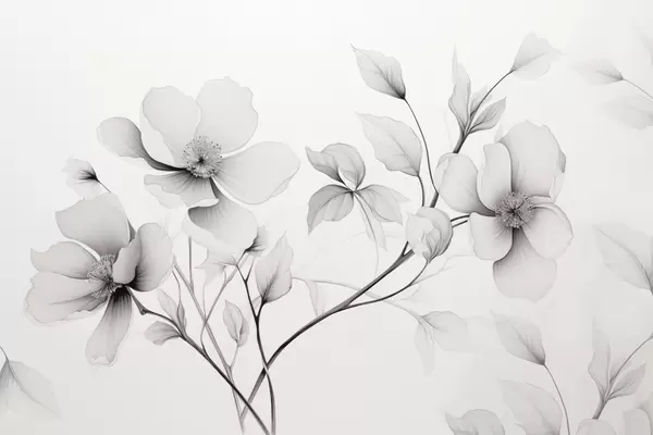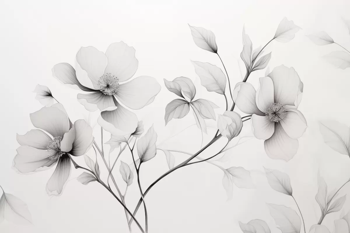 Fototapet Flori albe și negre cu linii elegante pe un fundal gri Nr. w09271