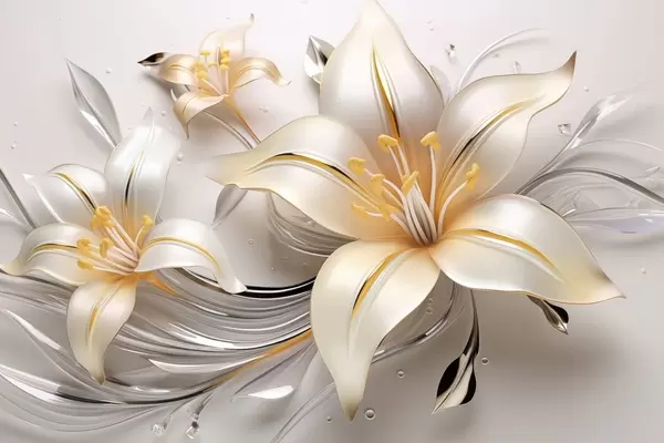 Fototapet Crini galbeni cu efect 3D pe un fundal deschis Nr. w09278
