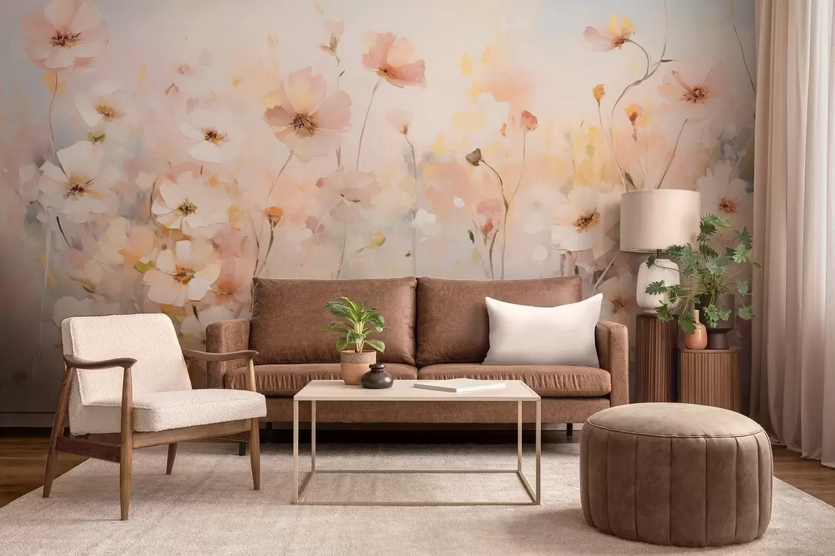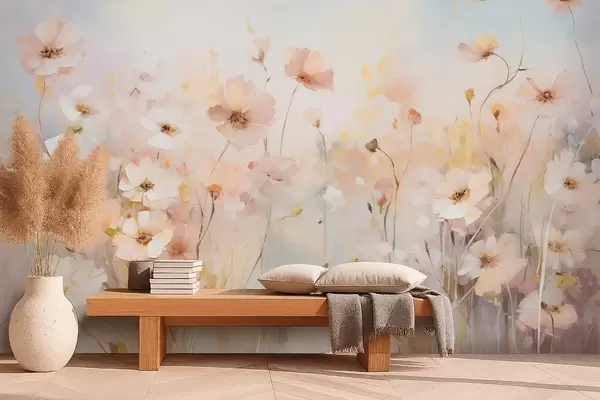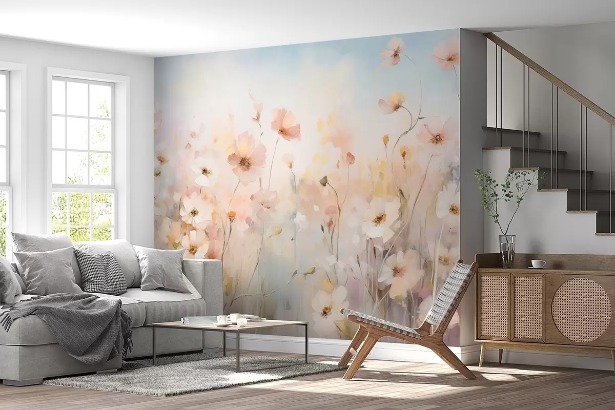fototapet Flori sălbatice în nuanțe pastelate în stil acuarelă w09280