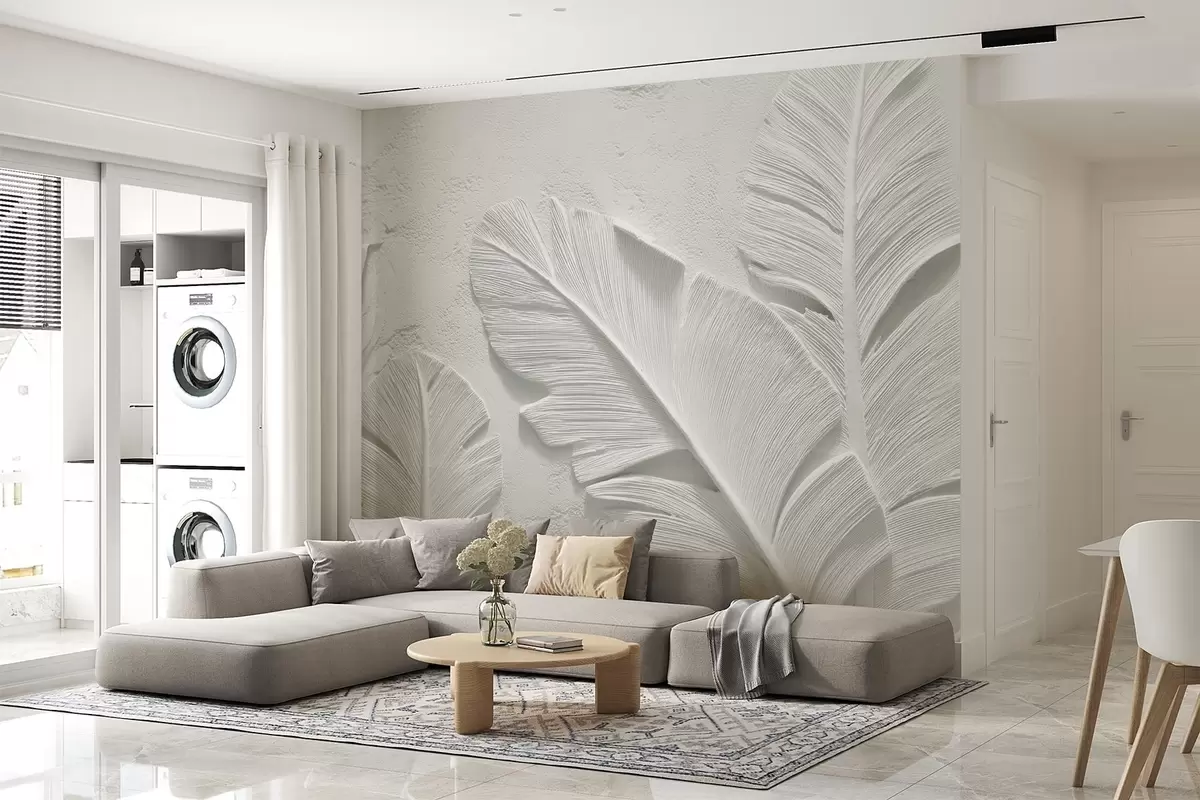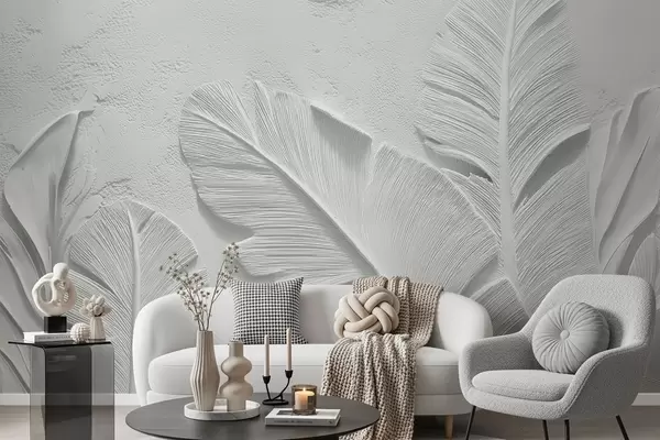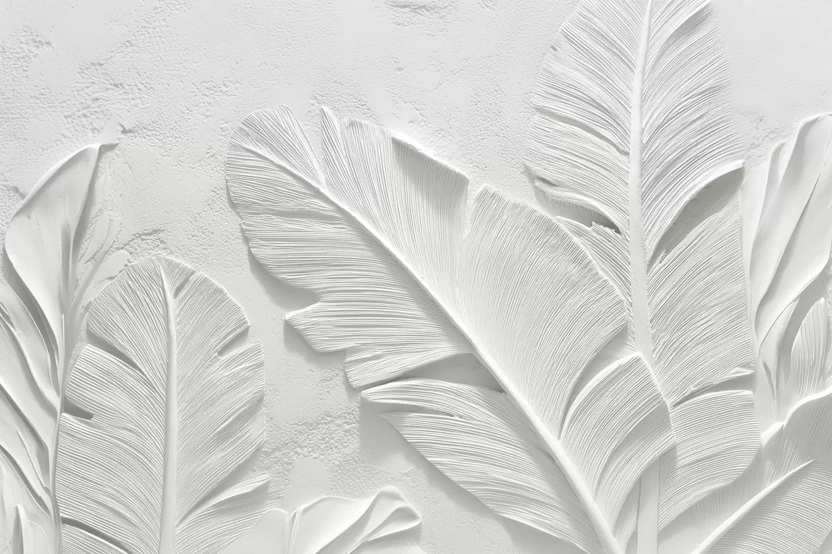 Fototapet Frunze gri texturate pe un fundal cu relief din ipsos fals Nr. w09307