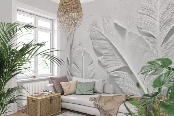 Fototapet Frunze gri texturate pe un fundal cu relief din ipsos fals Nr. w09307