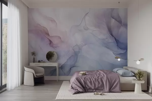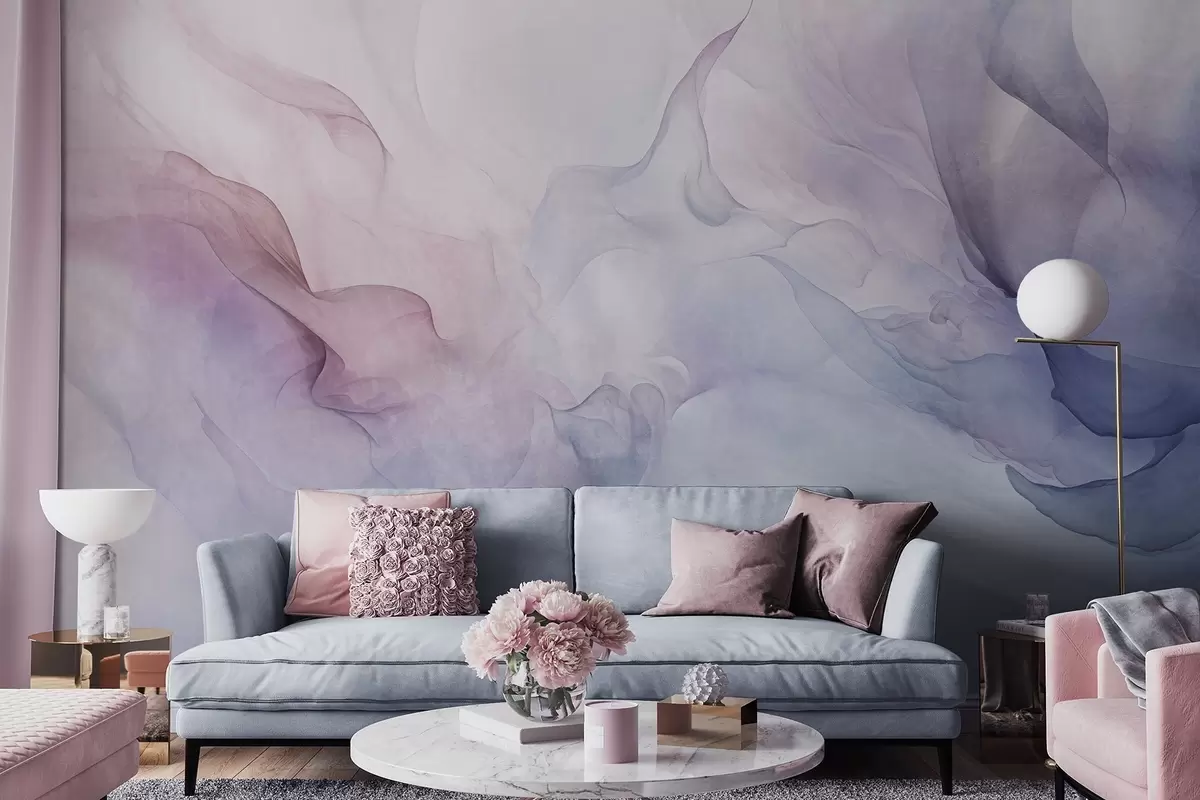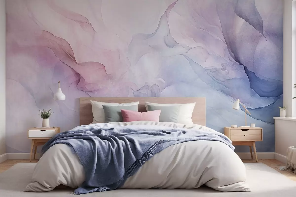 Fototapet Pictură abstractă texturată cu nuanțe pastelate de roz, violet și albastru care creează un efect moale Nr. w09318