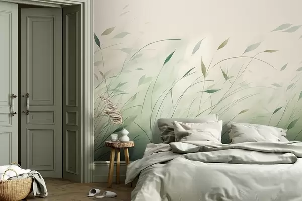 Fototapet Iarbă verde în vânt în stil acuarelă Nr. w09331