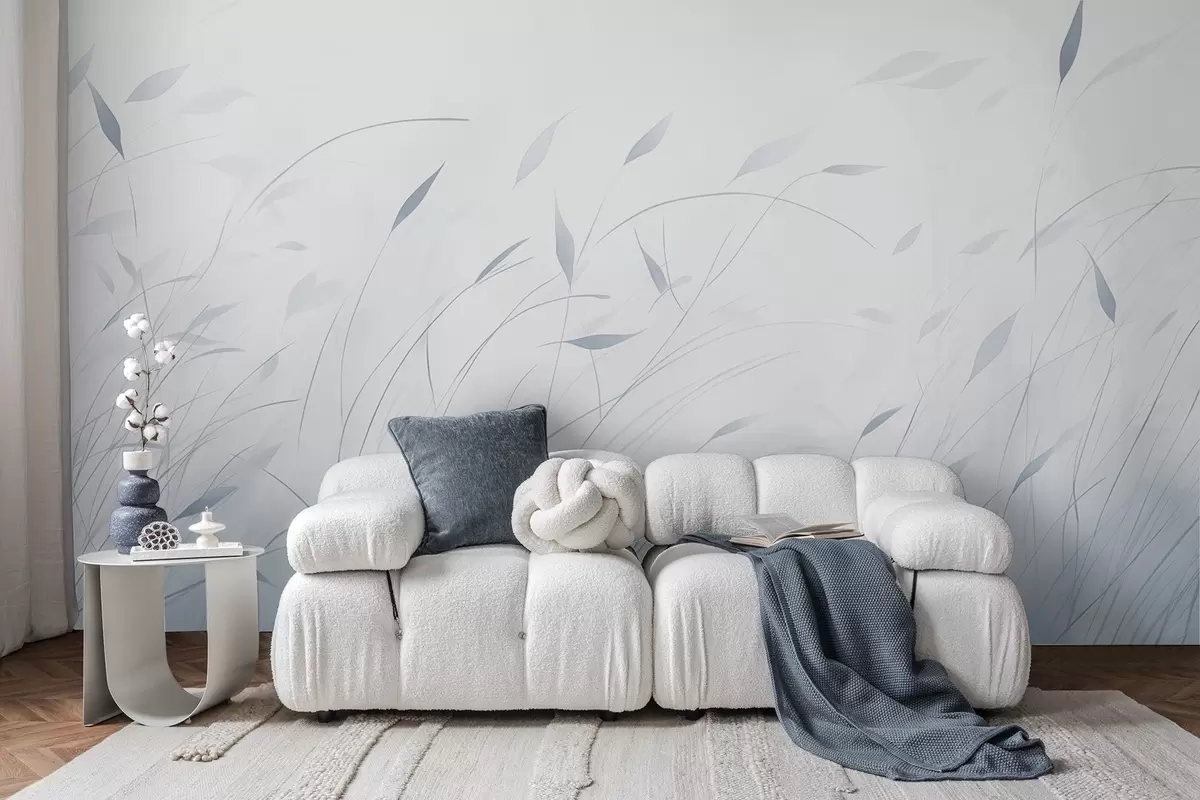 Fototapet Iarbă în vânt în stil acuarelă în nuanțe de albastru Nr. w09331v2