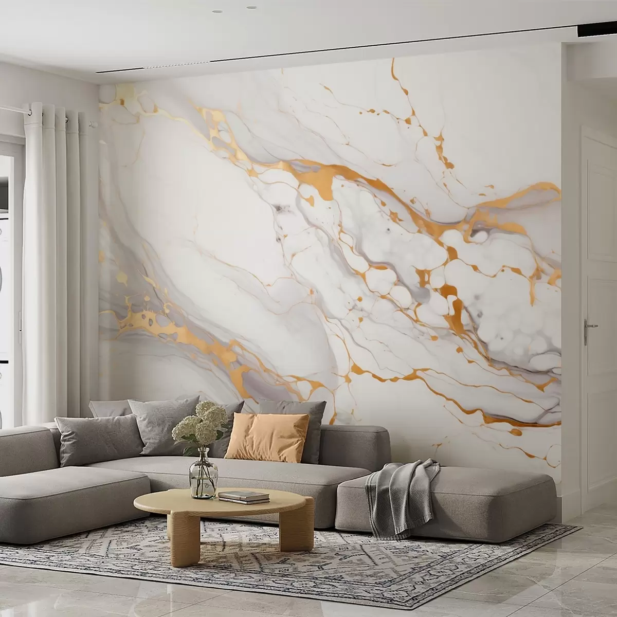 Fototapet Imitație de textură de marmură cu tranziții gri moale și accente galbene Nr. w09362