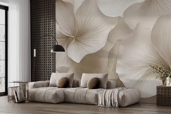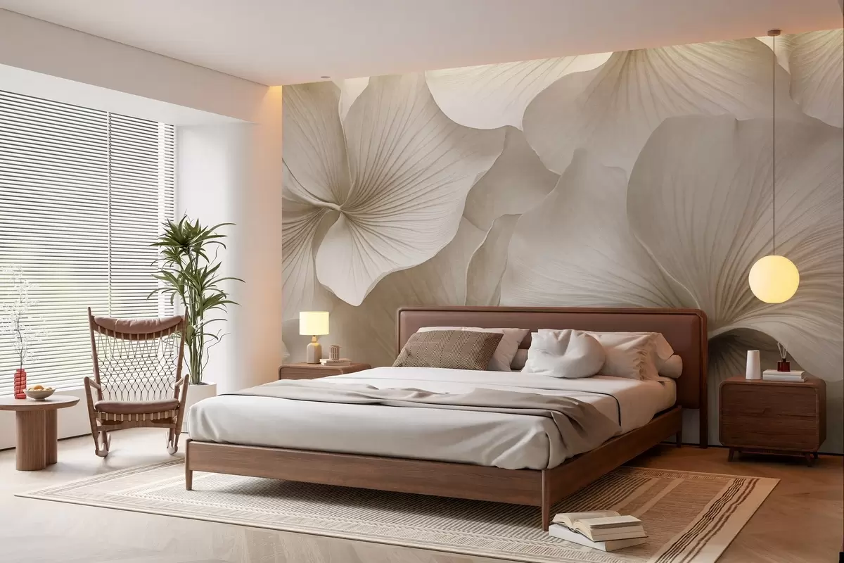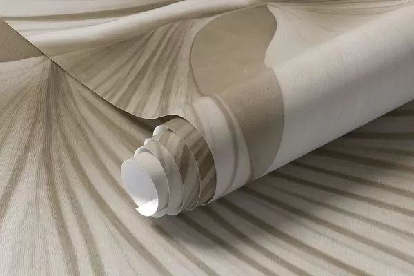 Fototapet Frunze de ginkgo albe și bej, textură moale, fundal floral abstract, stil modern minimalist Nr. w09421v1