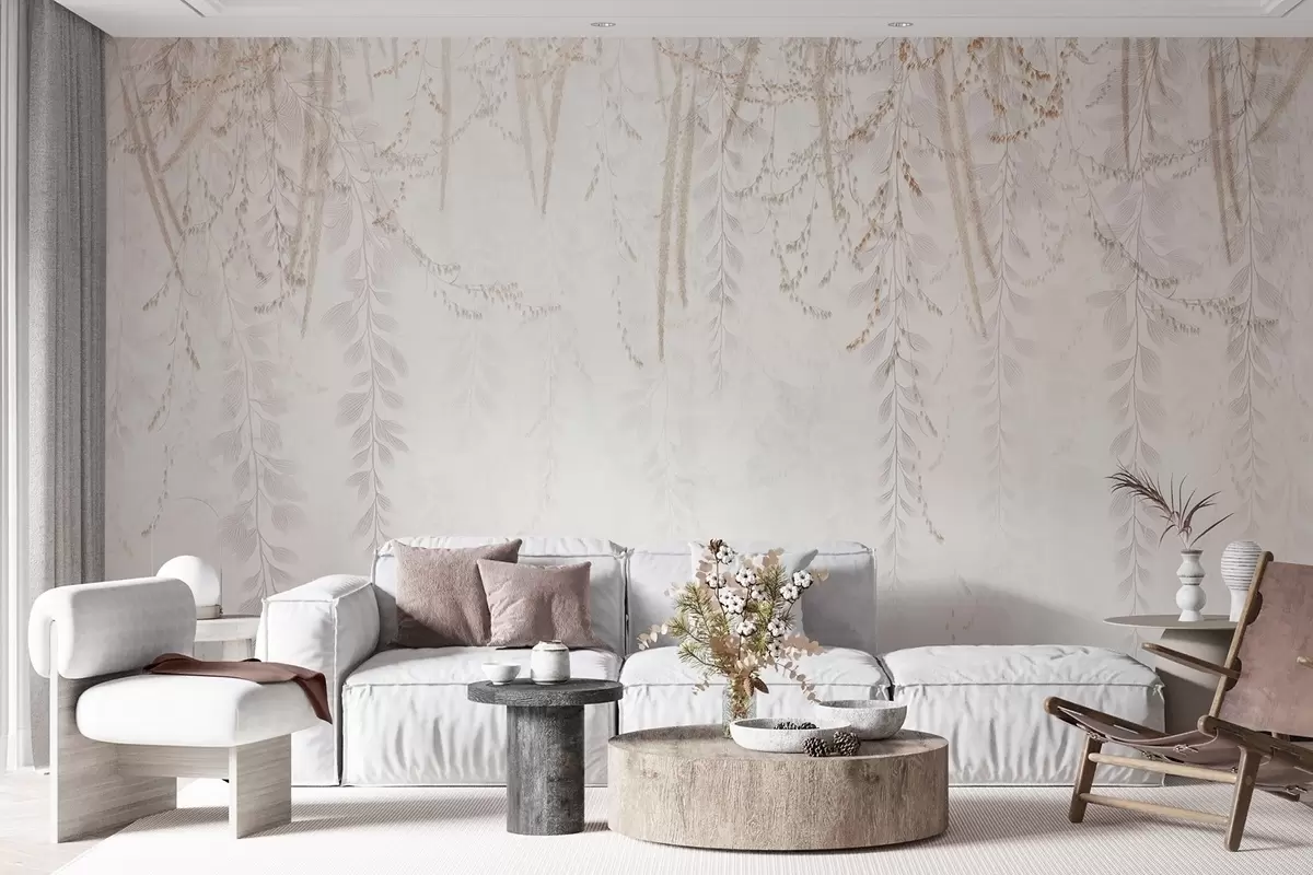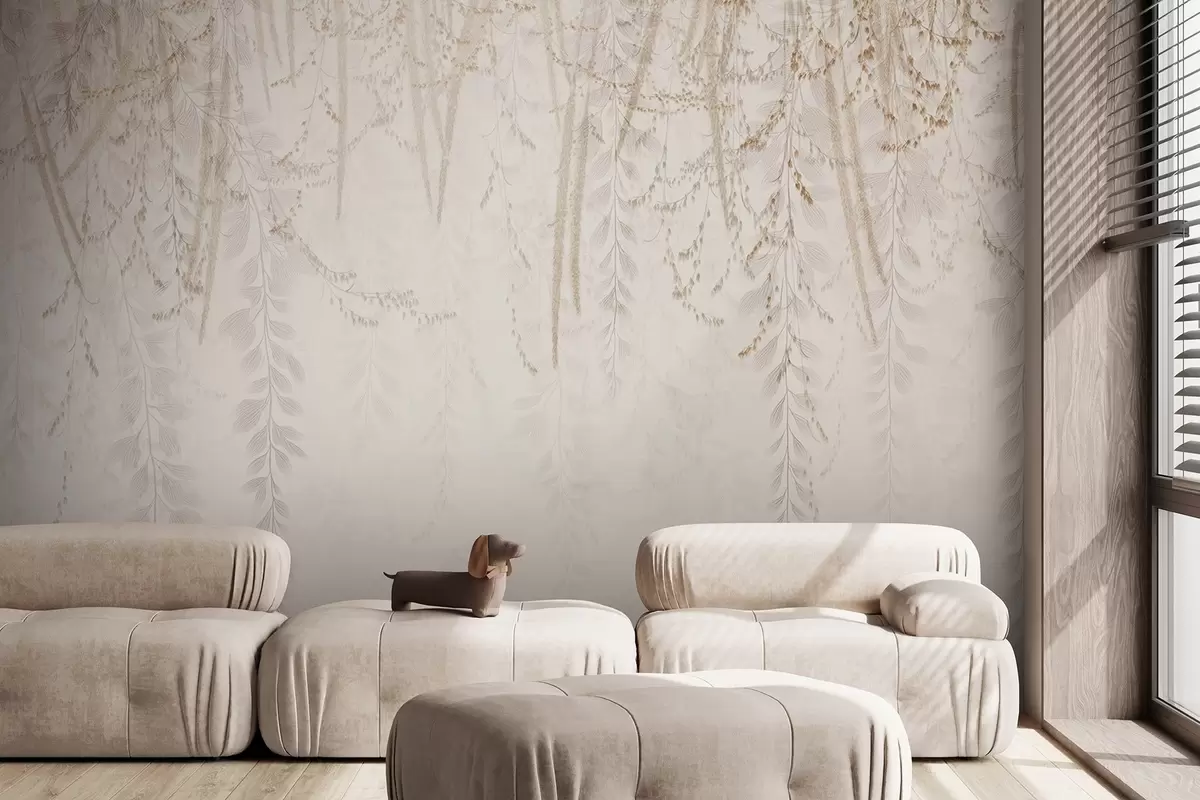 Fototapet Frunze și ramuri ușoare în tonuri de bej Nr. w09433
