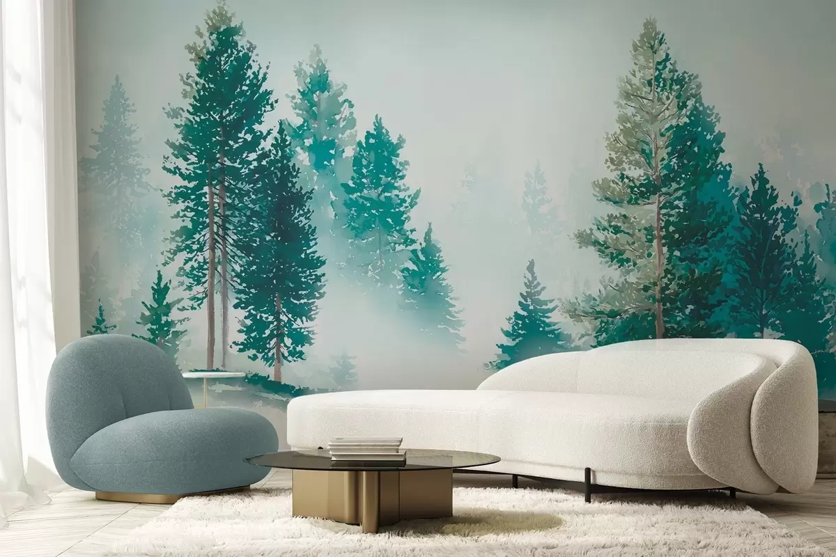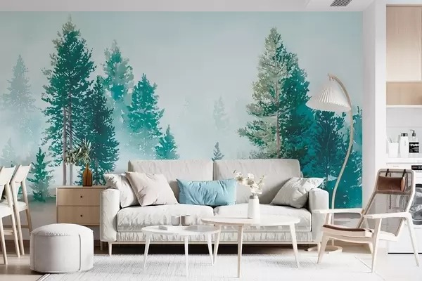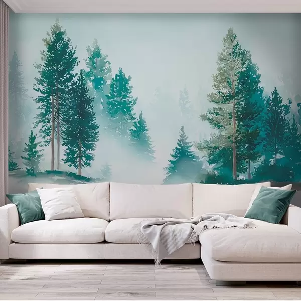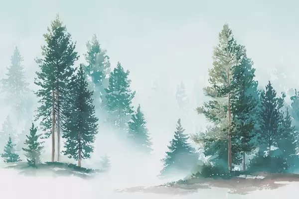 Fototapet Pădure de pini ceață în stil acuarelă Nr. w09444