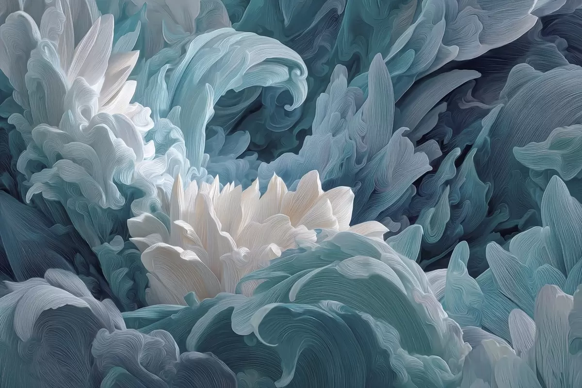 Fototapet Dansul petalelor și valurilor oceanului în nuanțe de albastru Nr. w09454