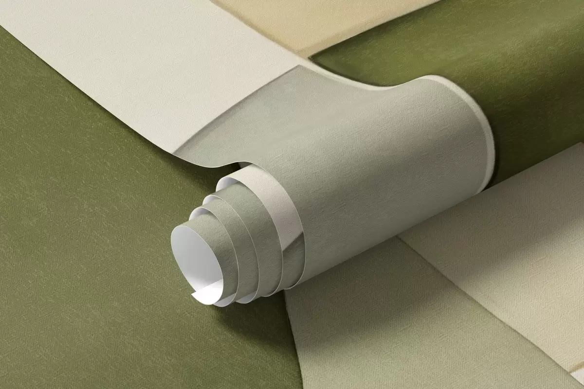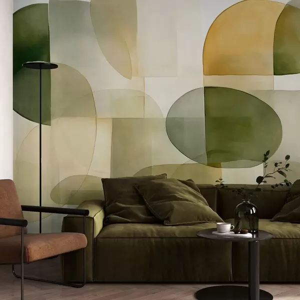 Fototapet Forme abstracte texturate în nuanțe de verde și galben, tonuri discrete, compoziție minimalistă, fundal neutru Nr. w09467
