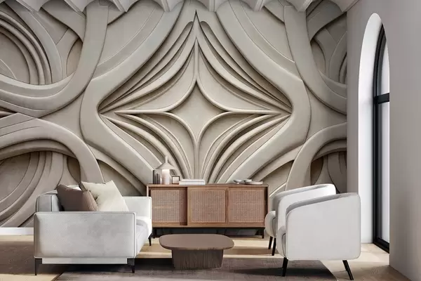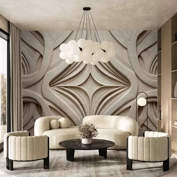 Fototapet Imprimeu geometric abstract simetric texturat, culoare bej deschis, stil art deco, detalii complexe Nr. w09473